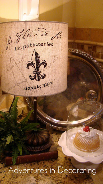 And, since the lampshade says "patisseries," it was only fitting that I place a sweet *faux* treat under the cloche:
